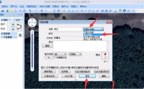 3.进入设置后,您将看到一个标签设置界面。在此处,点击地名旁边的下拉菜单,并从中选择“显示名称”的选项。完成设置后,您所选地点的名称便会直接在地图界面上显示出来。