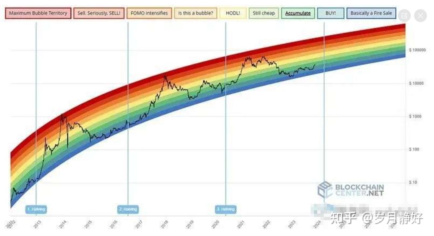 实时图表:https://www.blockchaincenter.net/en/bitcoin-rainbow-chart/