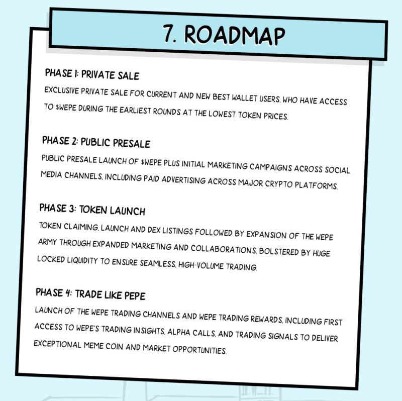 市场竞争:$wepe 正在进入一个已经饱和的模因币领域。超越doge、shib 或pepe 需要持续的行销努力和社区参与。