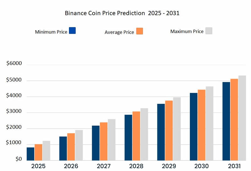 我们的预测表明, bnb币将在2025年底附近达到1,201.19美元的高价。2026年, bnb的价格在1,450美元至1,871美元之间。在2031年,它的价格在4,834美元至5,229美元之间,平均为5,102美元。