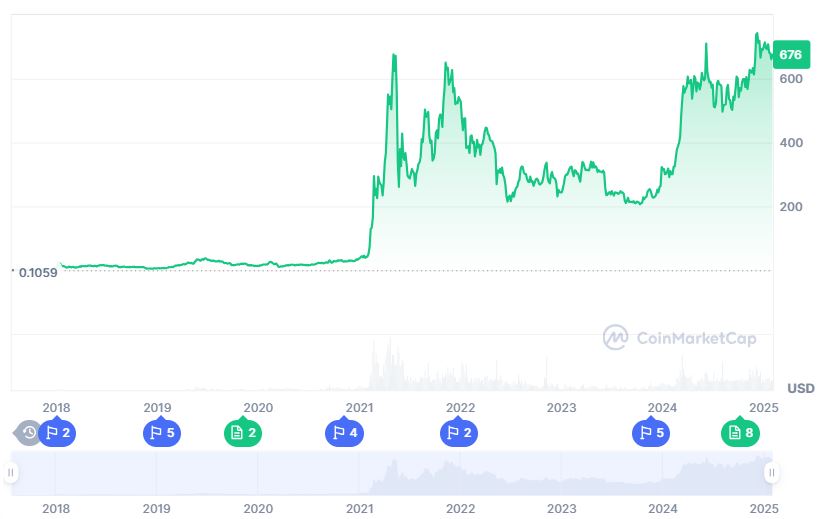 - 2025年2月,bnb 交易接近670美元的心理标记,略低于一月份的价格。