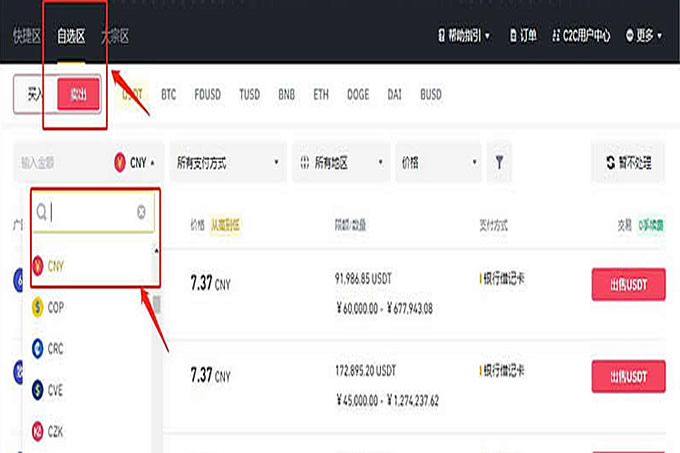 10、点击【自选区】,选择【卖出】,选择【cny】,bnb币提现人民币步骤就可完成