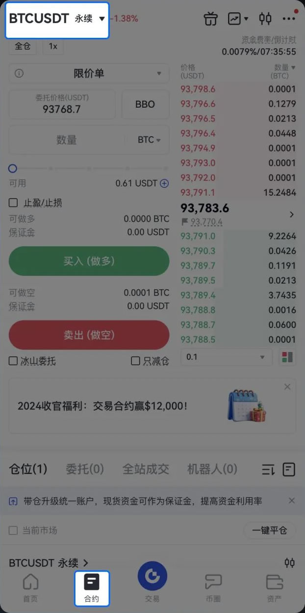 一、选择永续合约及交易对
