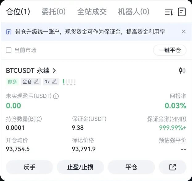 1、在「仓位」页面查看您的持仓信息, 随时关注强平价格或设置止盈止损。