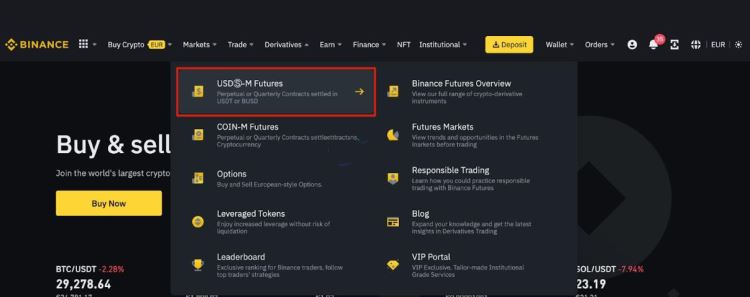 1、在开设币安合约帐户前,首先需要注册常规币安帐户(点击注册)。账户注册完成后登录个人币安账户,将鼠标移至页面顶部的【衍生品】一栏,然后点击“u本位合约”。