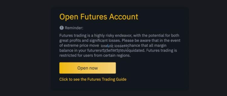 2、点击【立即开户】按钮,激活币安合约账户。您现在可以在币安交易合约产品了。请注意,您仍应该做好准备以及自我教育,直到可以负责任地使用产品。