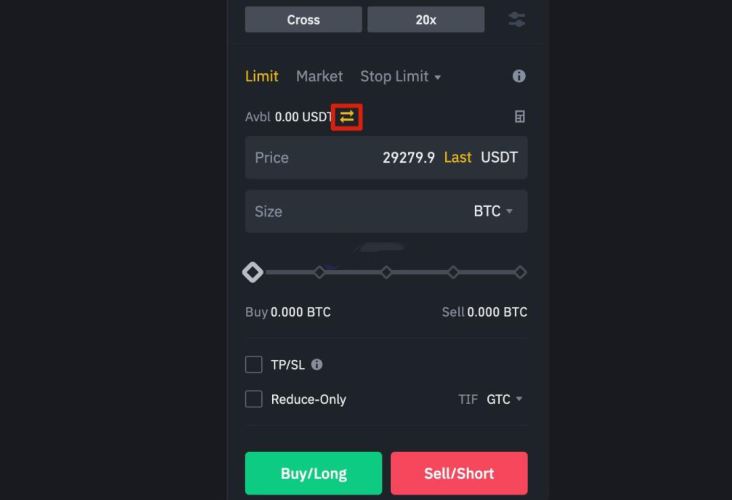 3、向合约账充值,首先需要确保个人币安账户中有可划转的资金。将资金转入个人合约钱包,请点击币安合约页面右侧的“转账”图标。