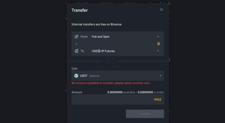 4、设置想划转的金额与要使用的钱包,然后点击【确认】。相应的余额很快就会转入合约钱包。如有需要,您也可以反向从合约钱包中划转出资金到币安内部其他钱包。