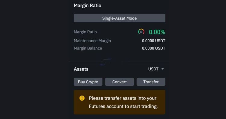 9、在【保证金概览】模块,您可以查看可用资产、划转以及购买更多加密货币。还可以查看与当前合约和所持仓位相关的信息。点击【划转】,即可在合约钱包和币安生态系统的其他账户之间灵活划转资金。