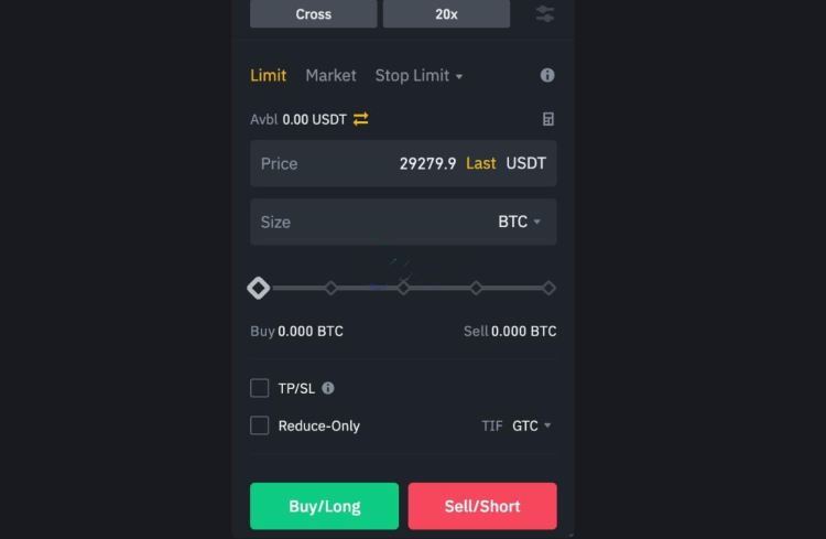 10、订单下达】模块,您可以下达买入/做多以及卖出/做空订单。您可以在本文的后续部分找到有关可下订单类型的详细说明。您还可以在视图顶部的全仓保证金和逐仓保证金之间切换。如果您想调整杠杆倍数,请点击当前的杠杆倍数(默认为20倍)。