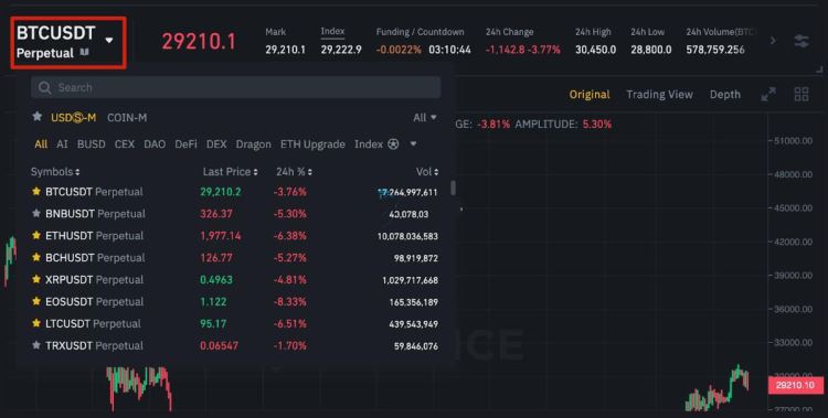 12、在币安合约,您可以手动调整每个合约的杠杆倍数。将鼠标移动在页面左上角并悬停在当前合约类别上(默认为btcusdt),即可选择特定合约。