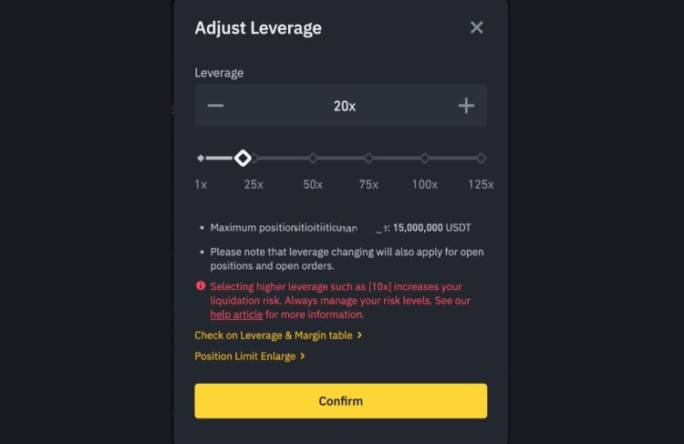 13、如需调整杠杆倍数,请前往【订单下达】模块,点击当前杠杆倍数(默认为20倍)。调整滑块或输入数值设定杠杆倍数,然后点击【确认】即可。