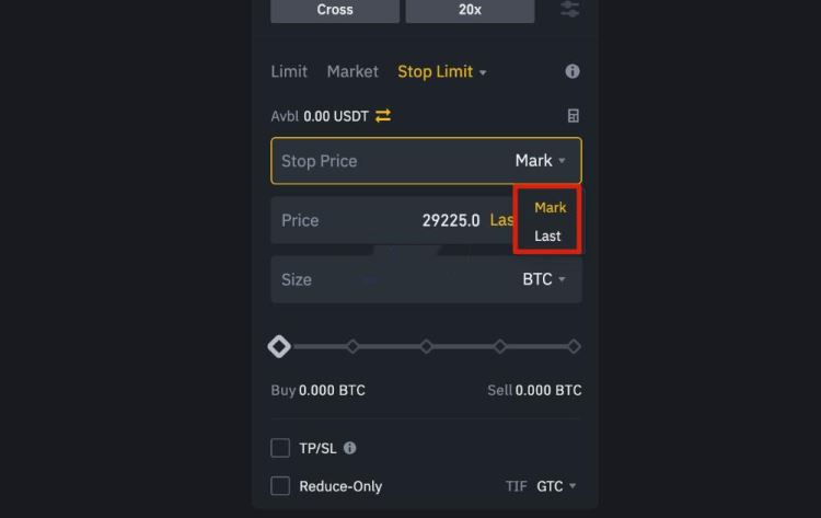 14、在设置使用止损价作为触发条件的订单类型时,可以选择将最新价格或标记价格作为触发条件。为此,请在订单下达模块底部的【触发条件】下拉菜单中选择要使用的价格。
