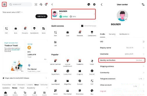 ·在bitget app 版:请前往【用户中心】,然后前往【身份验证】。