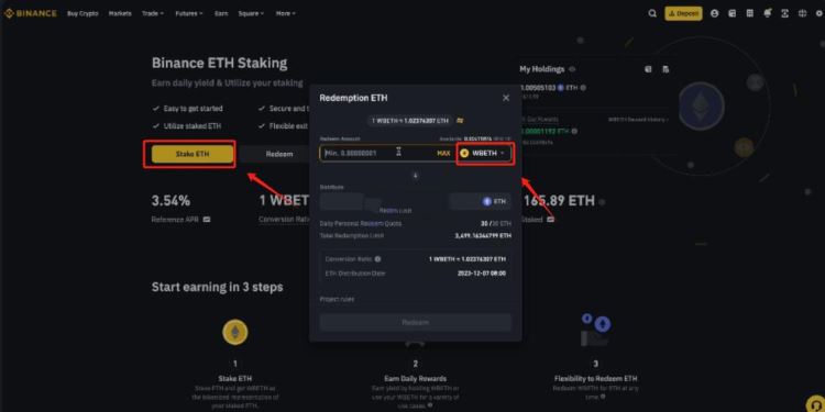 质押币后取回质押币还是比较简单的,可以在质押币的操作页面选择赎回,质押是将一定数量的加密货币保存在称为质押钱包的特殊钱包中,并使用它来参与该网络上交易验证的过程。这个过程也称为权益证明(pos)共识机制。下文就是在币安质押以太坊赎回的教程讲解: