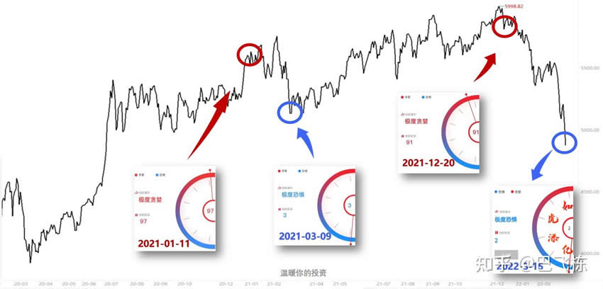 3. 恐贪指数跟市场的阶段性顶部和底部都有不错的同步性