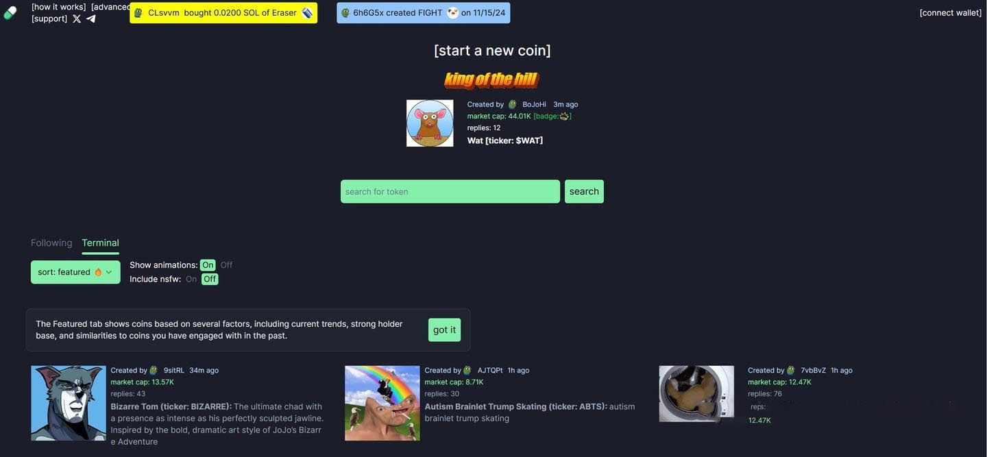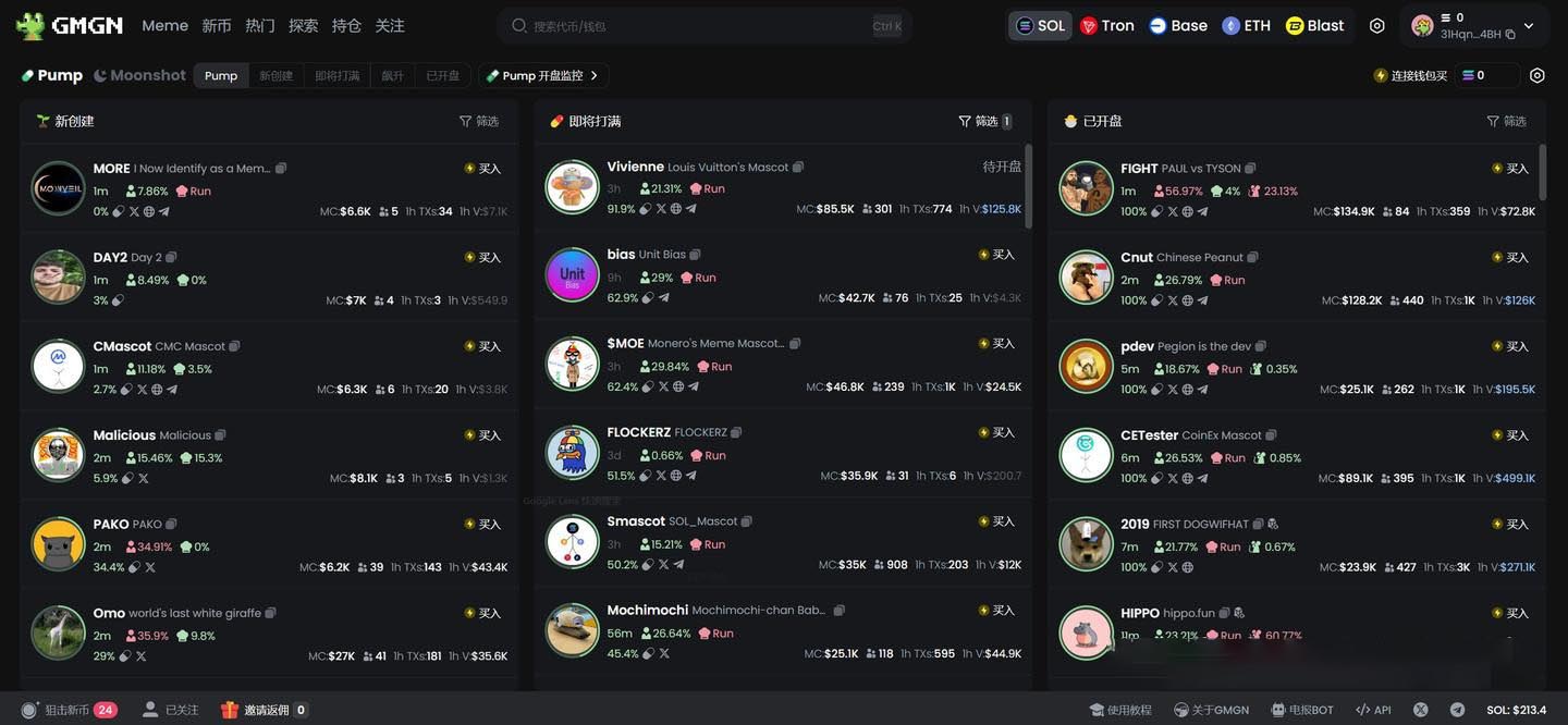 最左边是新创建的meme,中间是即将打满(待开盘)的meme,最右边是已开盘的meme