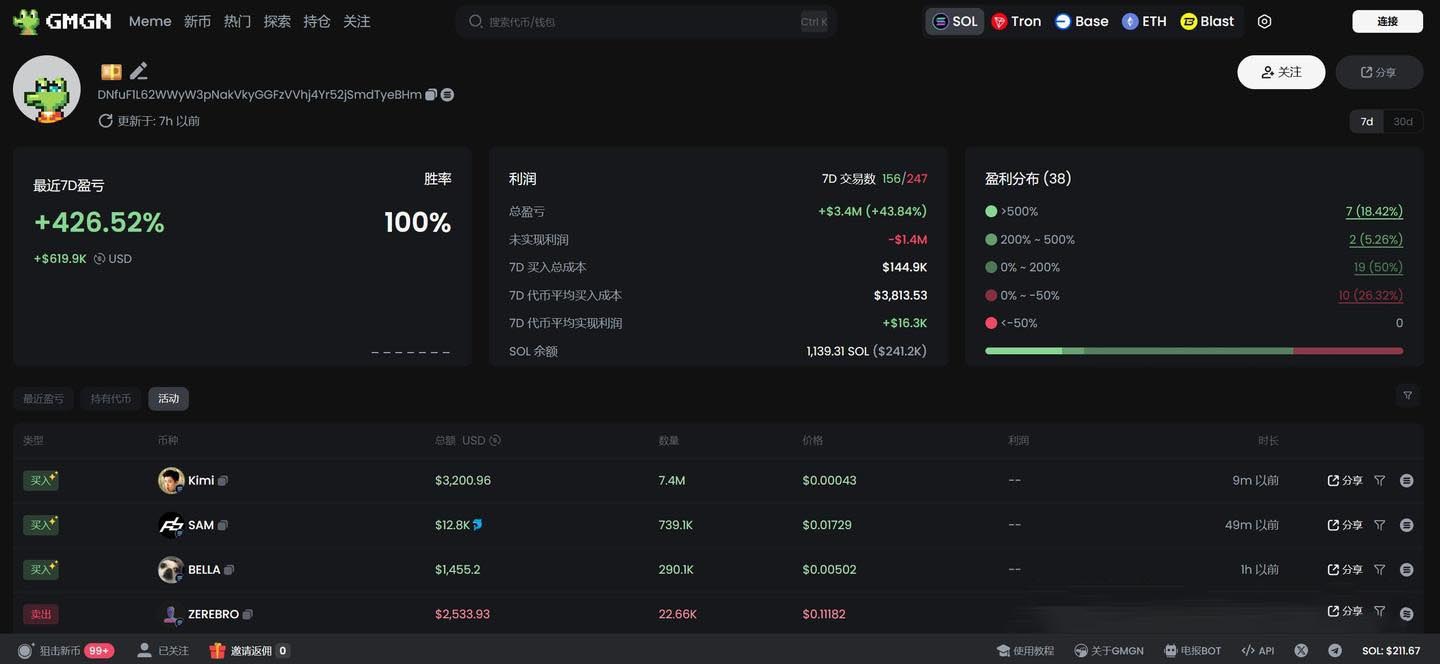 通过聪明钱的活动信息,可以帮助我们提高扫链的效率以及发现金狗的成功率。