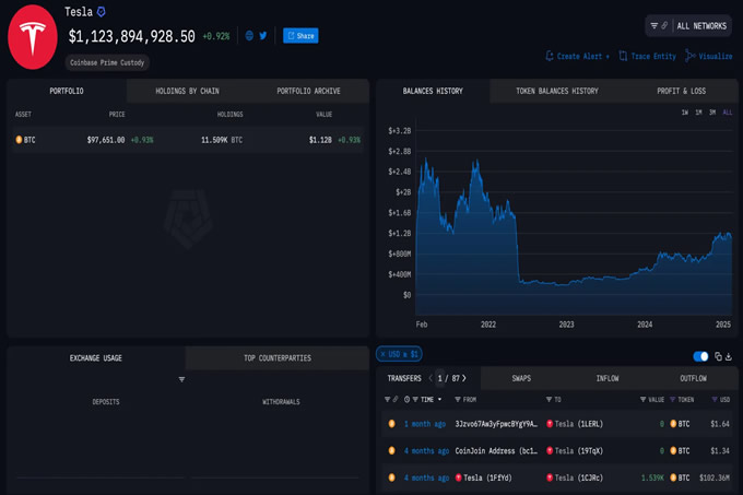 埃隆·马斯克(elon musk)的公司特斯拉(tesla)用比特币杀 人,在2024年第四季度赚了6亿美元的利润,而没有增加了比特币的卢比(bitcoin)的109,000美元的拉力赛。该公司仍然持有11,509 btc,如特斯拉的sec所证实备案周一发布。