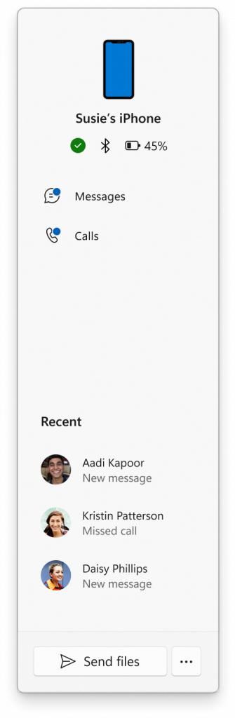 此次更新后,iphone 用户将能够享受到与 android 用户相同的 phone link 面板体验,包括设备信息、快速通话和消息快捷方式、最近联系人,以及文件发送功能。