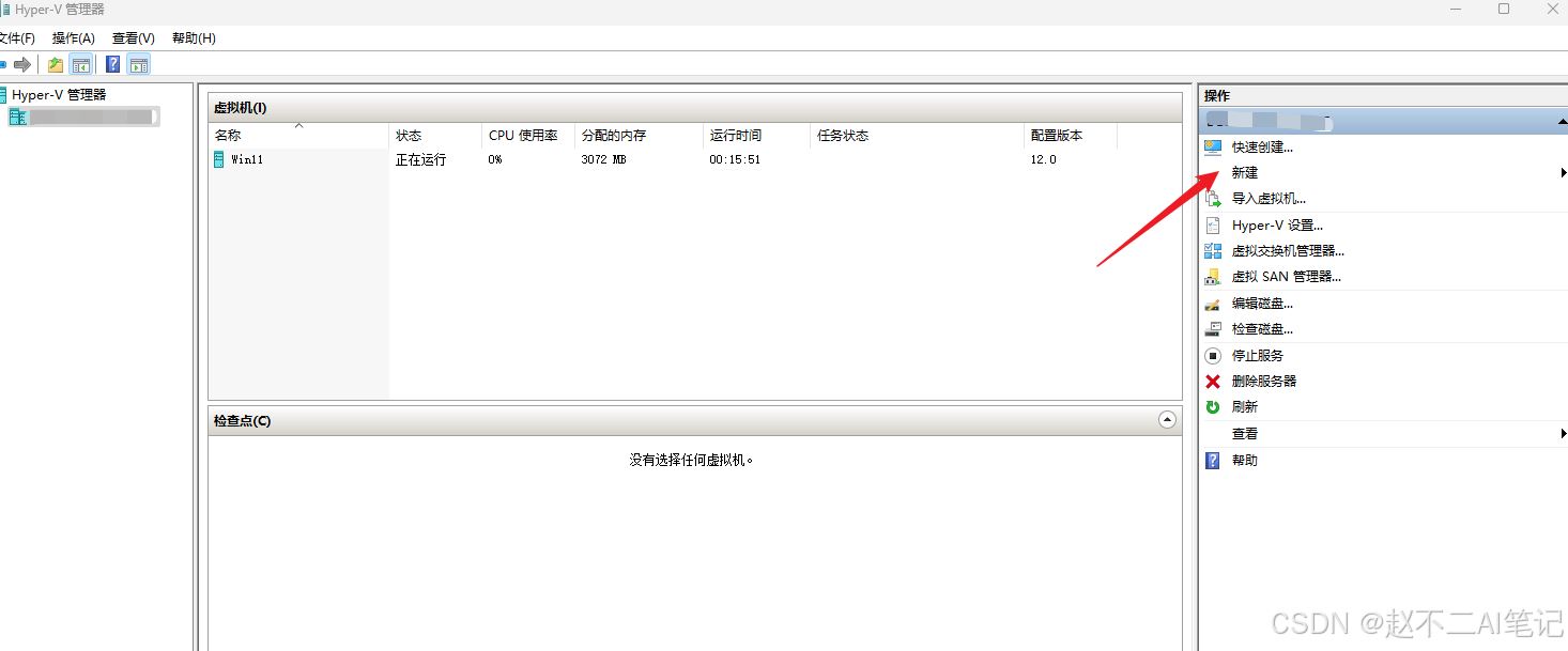 如何开启hyper-v并安装win11虚拟机不是本文重点。我大概说一下步骤: