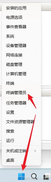 1)在powershell里设置vgpu分区并映射地址。右键单击开始菜单 --》点击 管理员终端