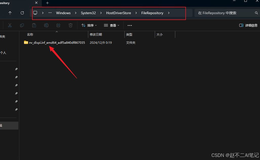 4)在资源管理器,进入这个目录:c:\windows\system32\driverstore\filerepository\,找到驱动文件夹,如下图: