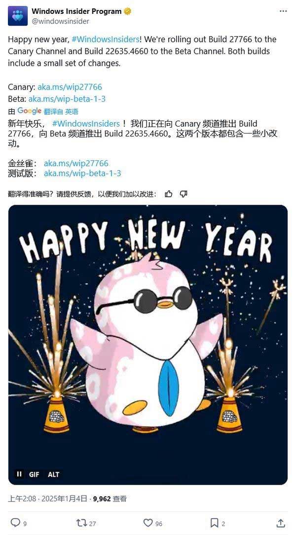 微软公司昨日(1 月 3 日)发布博文,宣布面向 canary 频道的 windows insider 项目成员,发布了 build 27766 预览版更新。