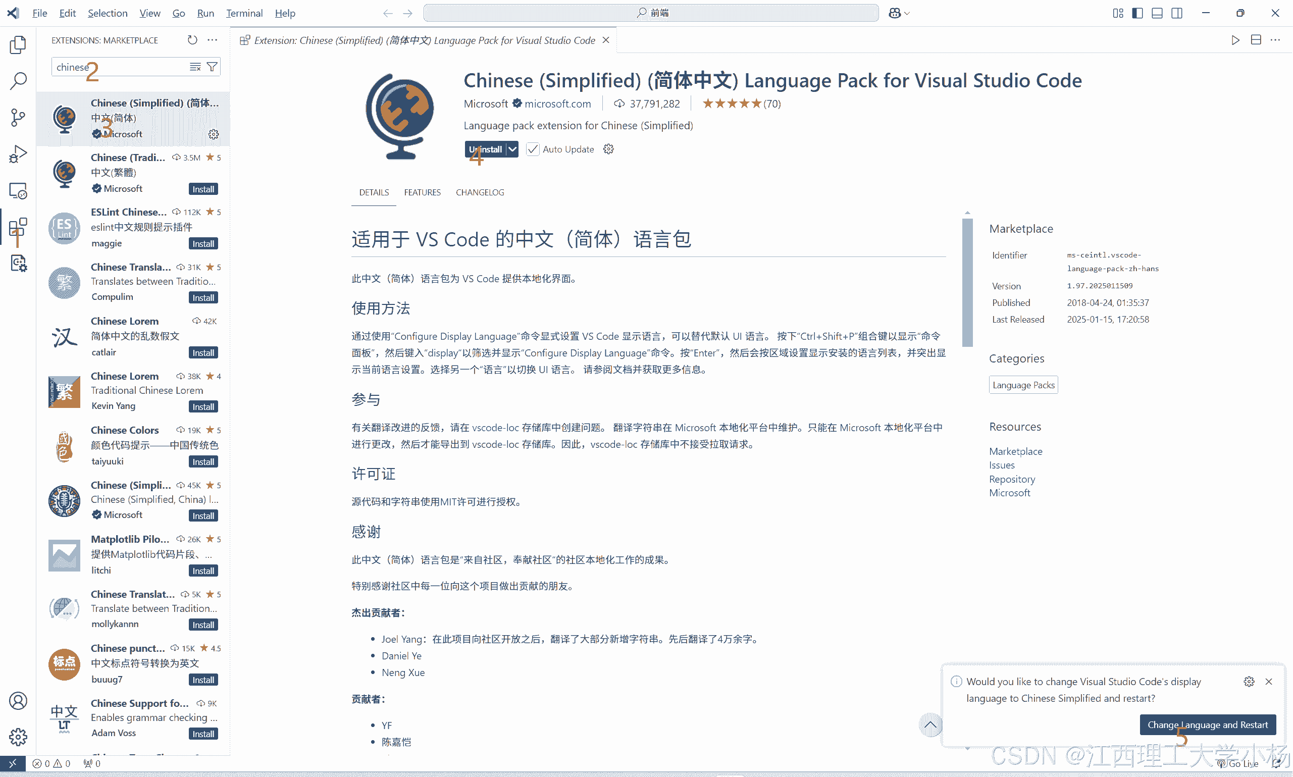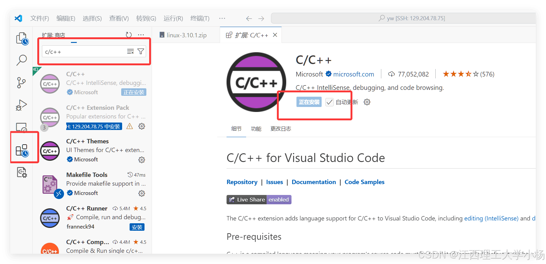 安装对应的语言包,例如此处安装的是c/c++插件,安装后在写c/c++代码时候会可以自动补齐代码。