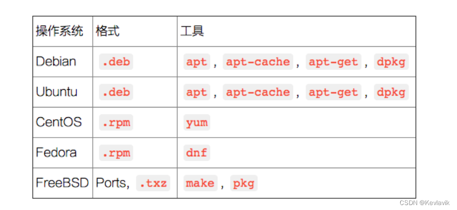 虽然这些包管理系统的功能和优点大致相同,但打包格式和工具却因平台而异: