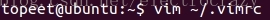 在启动vim时,当前用户根目录下的vimrc文件会被自动读取,因此一般在当前用户的根目录下创建vimrc文件,即使用下面的命令:
