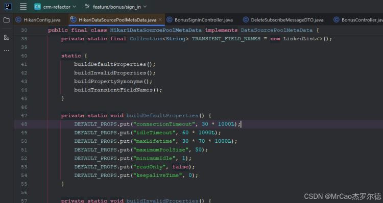 在进行断点调试后,由于项目使用了sharding-jdbc,某些参数并未按照hikari的默认值生效,而是被sharding进行初始化配置。sharding的相关代码如下: