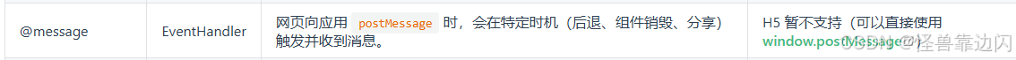 根据文档需要用window.postmessage,这个方法之前使用,是在web网页中嵌套iframe,父子页面通信的时候,文档上可以看到组件会被转成iframe:
