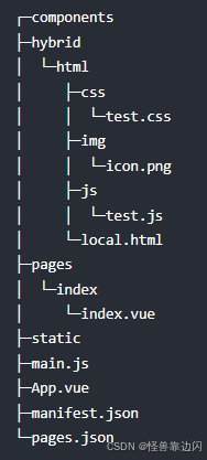 然后文档上还写到uniapp项目里也能加载html网页,只要把文件放在/hybrid/html中: