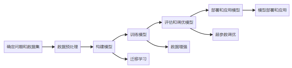 此外,还介绍了一些进阶技术,包括数据增强、迁移学习和超参数调优,以提升模型的性能和泛化能力。最后,展示了如何将模型封装为api并部署到实际应用中。