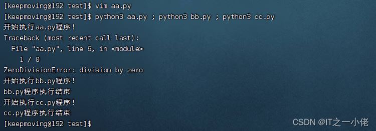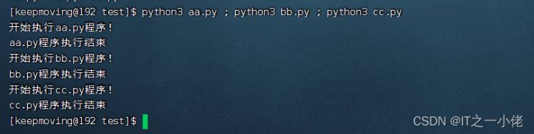 print('aa.py程序执行结束')python3 aa.py ; python3 bb.py ; python3 cc.p