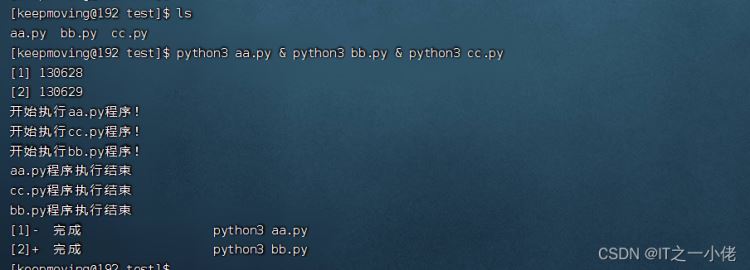 print('aa.py程序执行结束')python3 aa.py & python3 bb.py & python3 cc.py