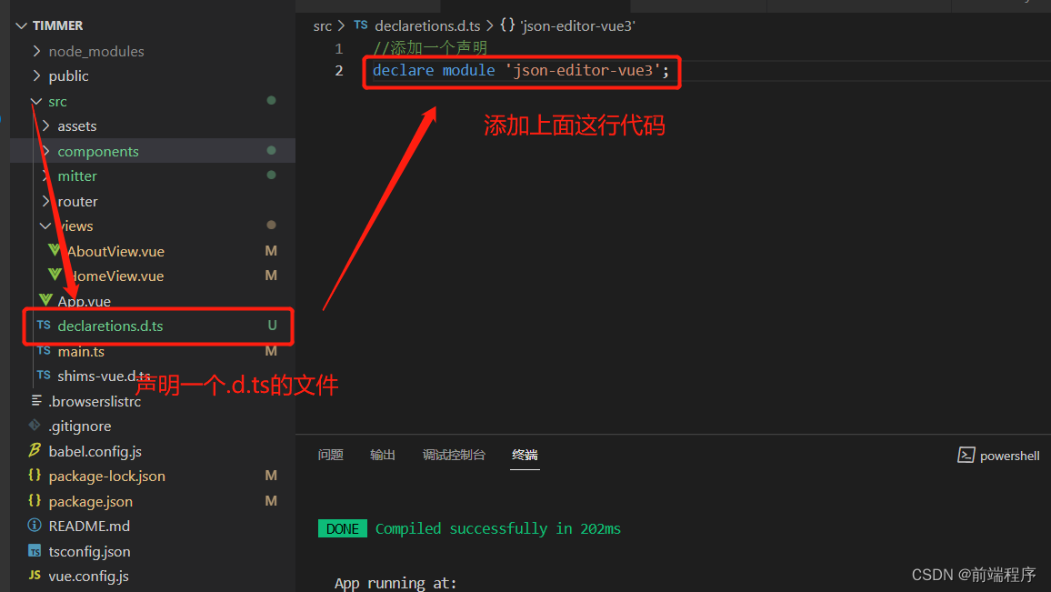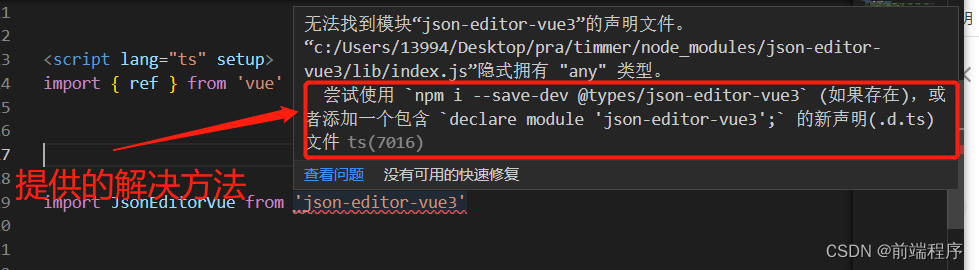 背景:我使用的项目是 vue3+ts 创建的项目,在导入 json-editor-vue3的时候出现了无法识别模块的问题.