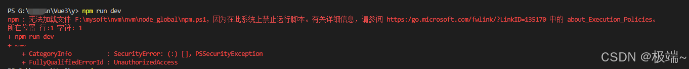 到此这篇关于npm无法加载文件:因为在此系统上禁止运行脚本解决的文章就介绍到这了,更多相关npm无法加载文件内容请搜索代码网以前的文章或继续浏览下面的相关文章希望大家以后多多支持代码网!
