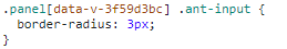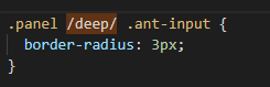 上图中span为子组件,父组件样式加了scoped,子组件只有最外层元素添加了父组件的data-v-hash属性,如果只是需改最外层元素样式,不需要加deep,但是如果修改内部元素,直接使用类选择器是无效的。比如通过父元素类型panel修改类名ant-input的元素,最终的样式被编译为