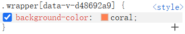 这时候a组件生成了自己的哈希值:data-v-d48692a9(我们暂时不考虑父组件的哈希值)。现在如果我要选中wrapper容器,设置背景色,就可以有如下代码: