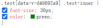 加上:deep()以后,用来表示当前样式应该跳过 scoped 的作用域限制,因此编译后其选择器部分不会附加 data-v-*,意味着不要编译为.test-inner[data-v-*]的形式,而是保留为.test-inner的形式。