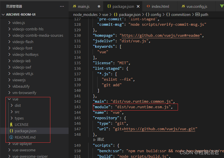 完整的vue你可以看node_modules下的vue文件,如下图