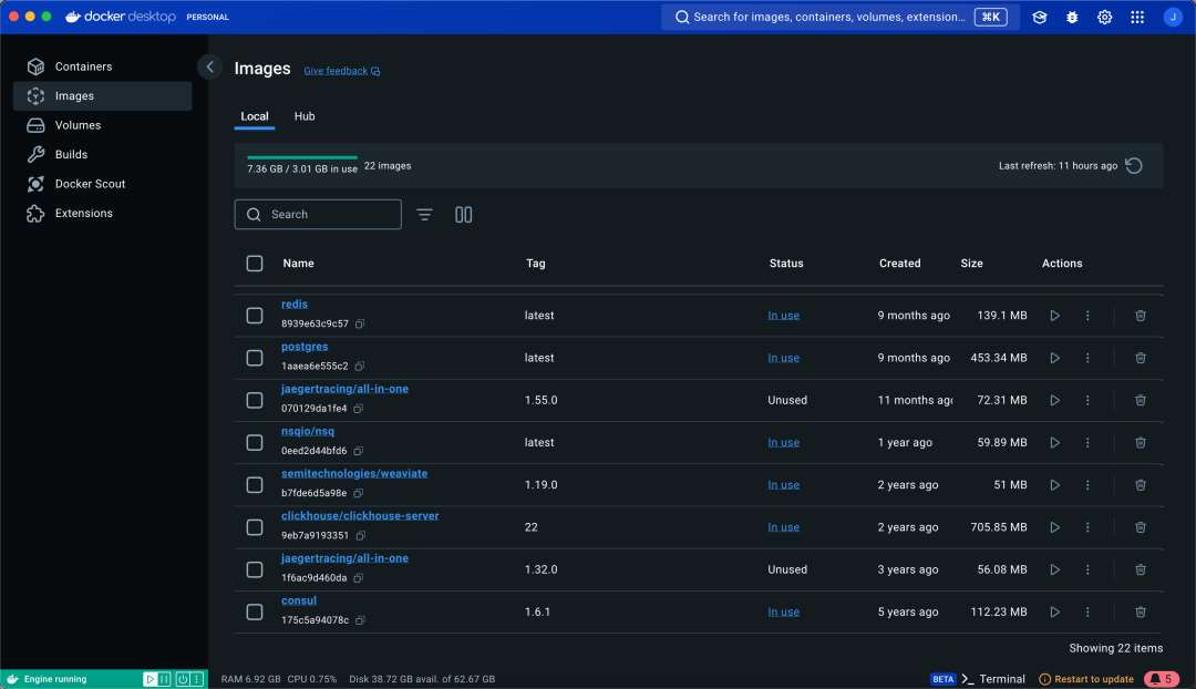 或者直接在上面安装的docker desktop面板上看: