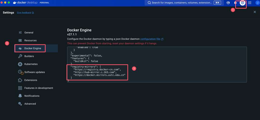修改 docker 配置文件