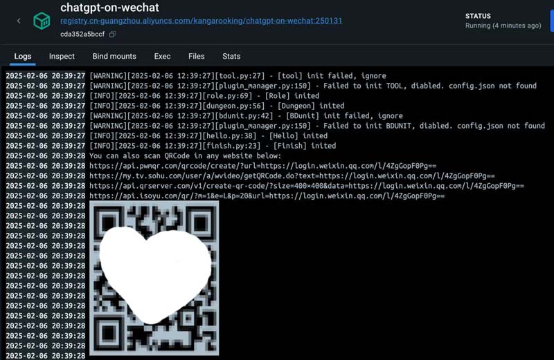 #获取微信登录二维码 docker logs -f chatgpt-on-wechat
