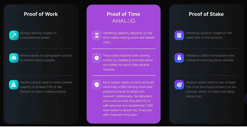 timechain 采用时间证明(pot)共识协议是其创新之一,专门用于解决跨链互操作性中的可扩展性和公平性挑战。与工作量证明 (pow) 或权益证明 (pos) 等传统共识机制不同,pot 旨在采用更具包容性、更安全的区块链验证方法。