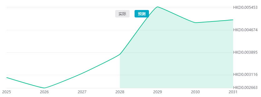 预计2031年 treat 价格涨跌为+2.00%。到2031年底,预计 treat 价格将达到 hkd0.005035,累计投资回报率为+166.27%。