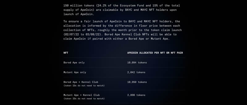 持有 bored ape yacht club (bayc) nft 的用户最多可领取 10,950 个 ape,价值 258,737 美元。接收者可以获得一个免费的bored ape yacht club nft,在 ape 空投之前,其平均底价约为 200,099 美元。