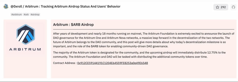 根据链上交互、桥接资金、治理参与等行为,用户获得 arb 代币。